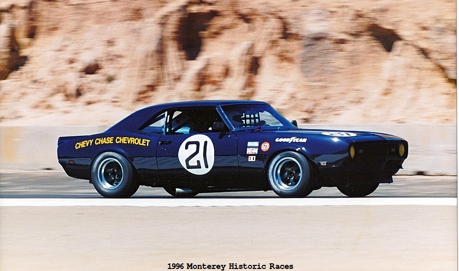 Hernando began running the car in regional SCCA events in 1968, many of which were at Marlboro Motor Raceway (Maryland). The Camaro was classified in A-Sedan, and Hernando had some good results, even victories in this car. The 1st place achieved in the November 23, 1969, "Turkey Bowl" at Marlboro is even represented in the wonderful Bill Dobbins photo that can be seen on this page. Hernando's success was even more impressive given how gentle he was on the car. Hernando exhibited such care because he didn't have the disposable income required to fix expensive damages caused by more aggressive driving.